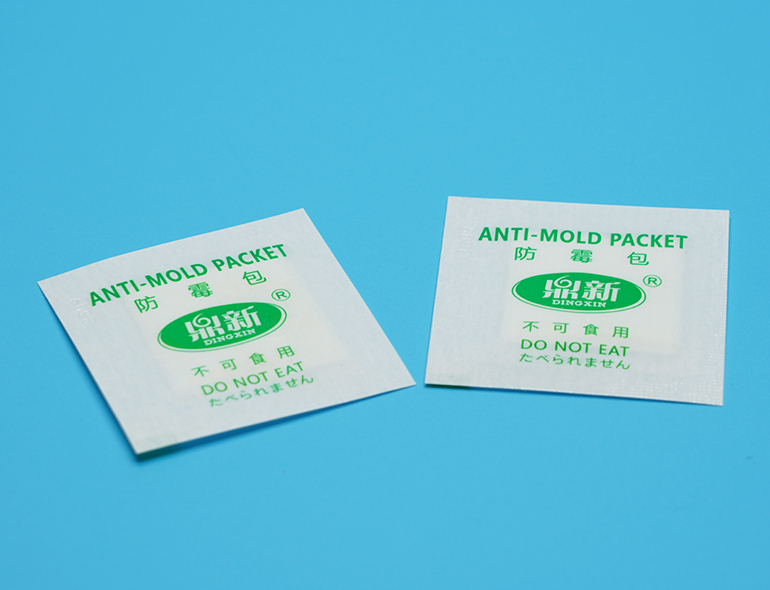 防霉片/包主要以安全无毒可回收的高分子材料、环保防霉成分与控释因子合成。在控释因子的调制作用下,防霉成分可与环境中的湿气发生反应而缓释出高效的防霉因子。该防霉因子具挥发性,形成防霉氛围,可对鞋类、包类等皮革产品从里到外的各个部分起到高效防霉保护作用。